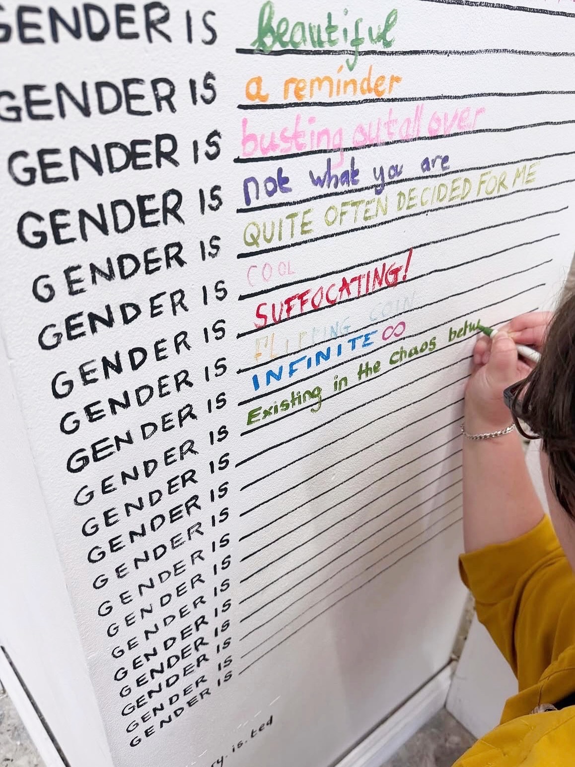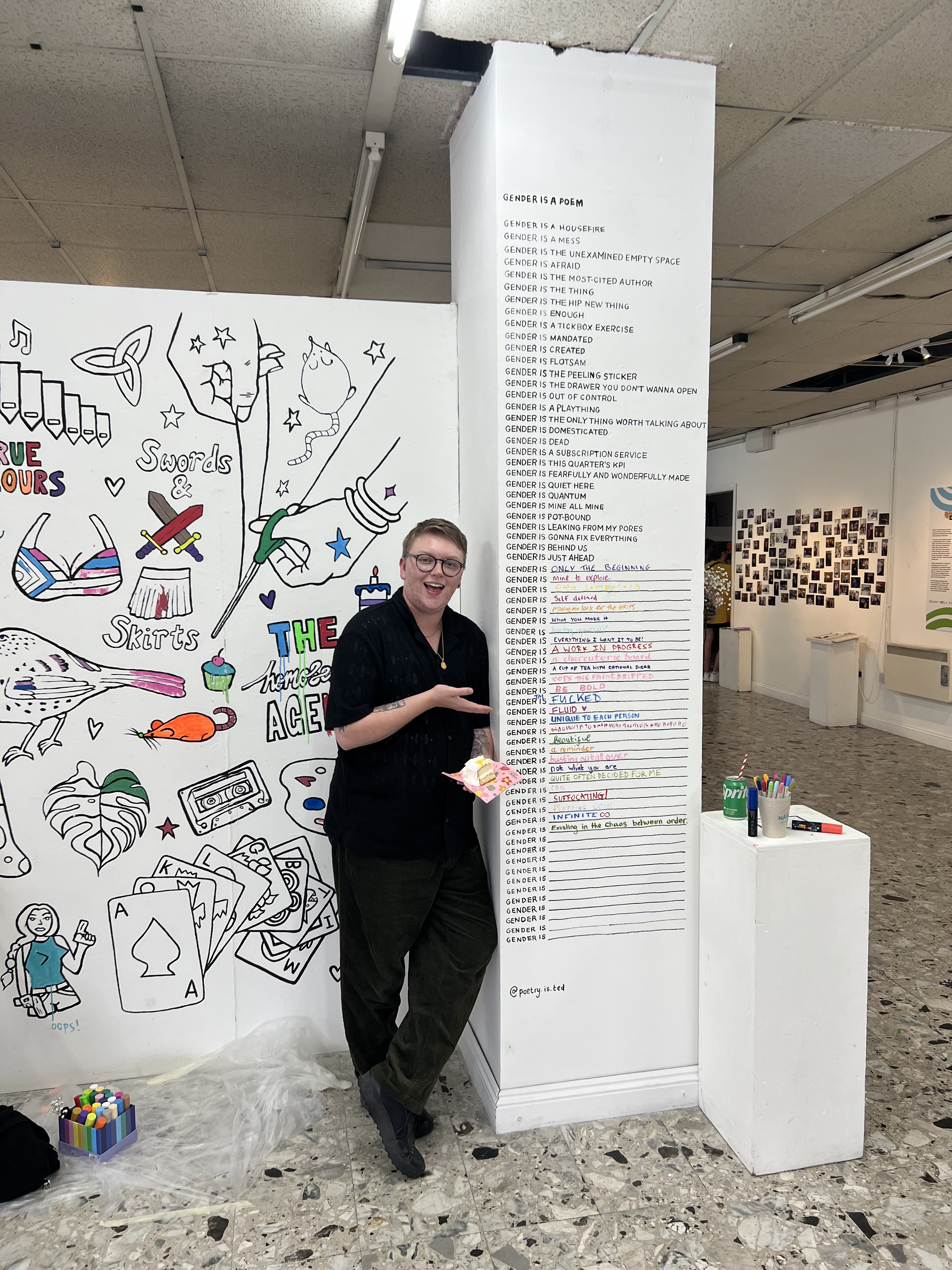 A collaboration between me and participants during the Queertawe exhibition at Volcano Theatre Swansea, July 2025.